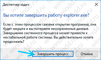 - В открывшимся окне предупреждения нажмите кнопку Завершить процесс.